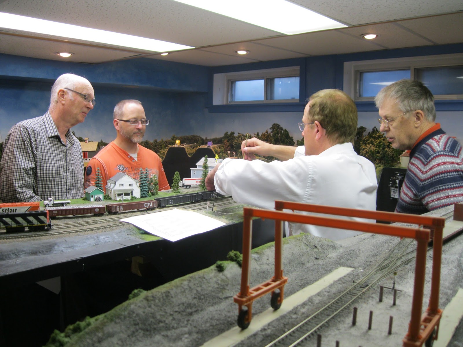 From left to right, Jim and Joel form the OLOR crew while Chris and Bob run the CN train.