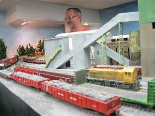 Indeed, there is a wye in Glen Robertson, but Bill has insufficient real estate to create the full wye, so he and Trevor Marshall designed a clever alternate arrangement of tracks to suffice. You've gotta love that sheepish grin on Jim's face. He knows his crew is handling the exchange as per plan!